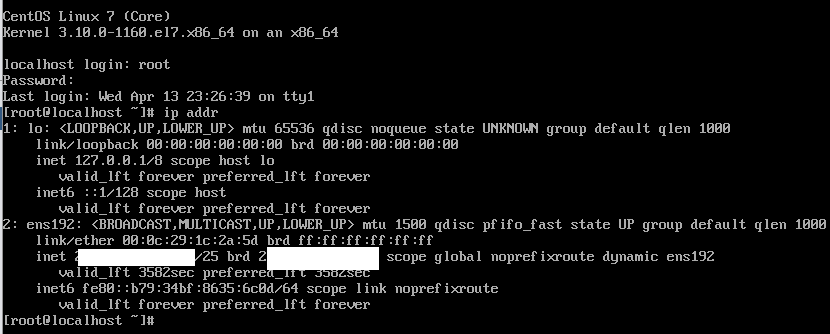 # vi /etc/sysconfig/network-scripts/ifcfg-ens192