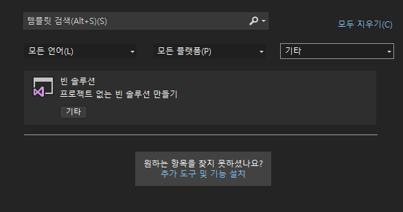 '개별 구성 요소'에서 '.NET Framework 프로젝트 및 항목 템플릿'이 꺼져있으면 '빈 솔루션'이 표시되지 않을 수 있다고 합니다.
