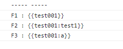 testString = "{{test001}}, {{test001:test1}}, {{test001:a}}, {{aa}}";