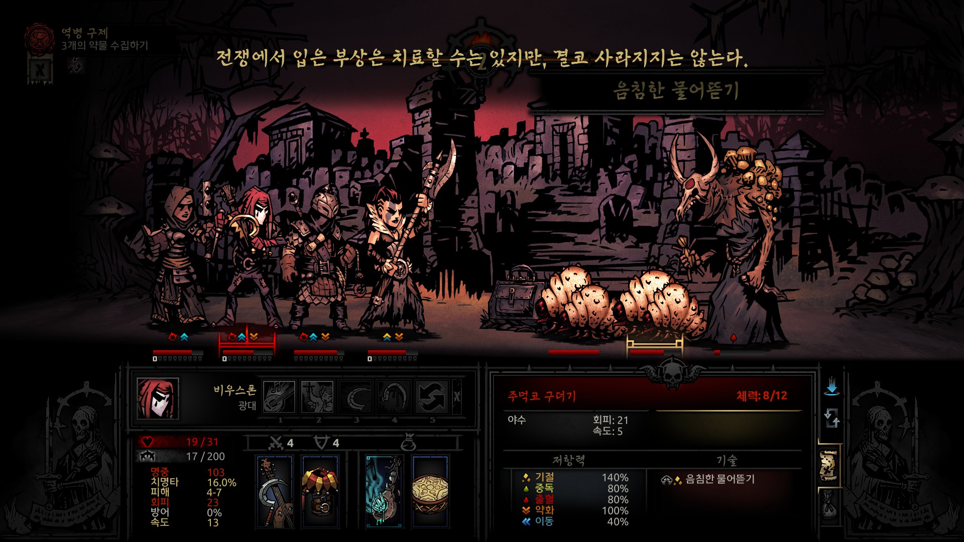 상태이상으로 귀찮게 하는 적이 많이 나오는 삼림지대입니다.