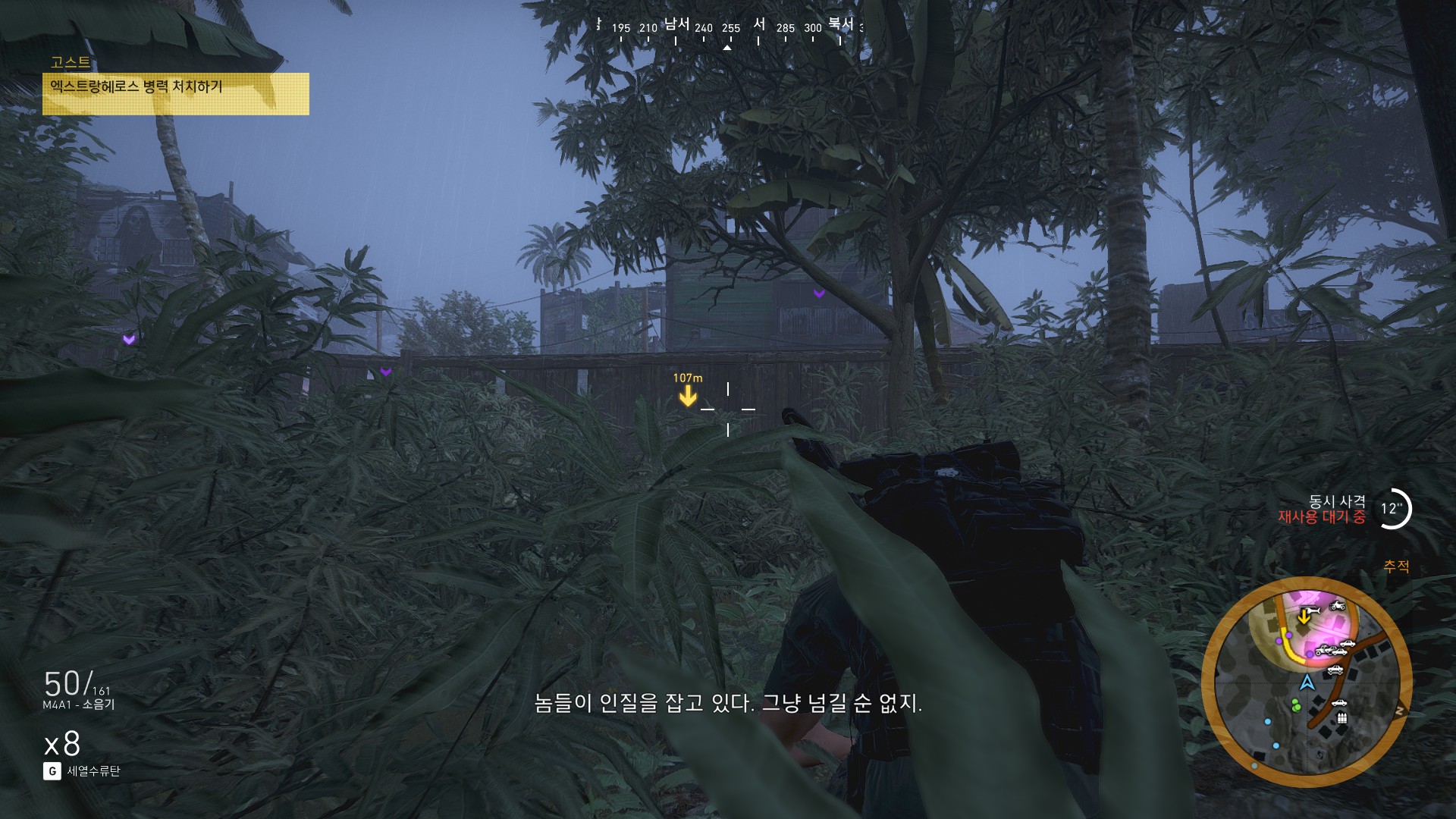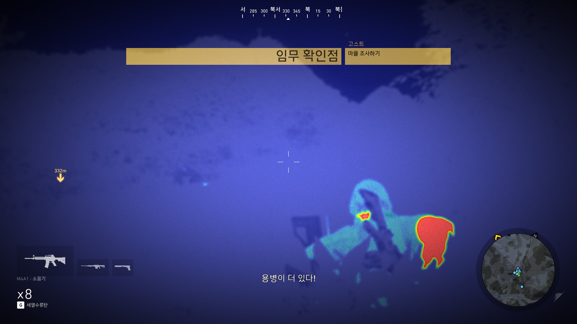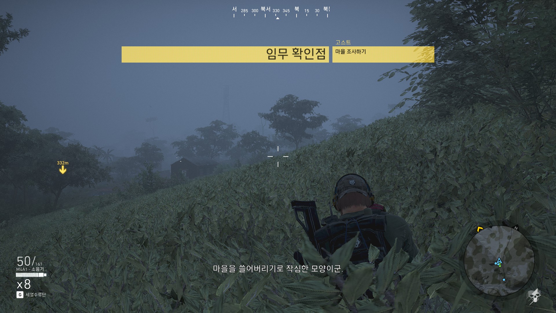 광학미채 입은 병사들이 마을하나 쓸어버리겠다고 몰려오고 있습니다.