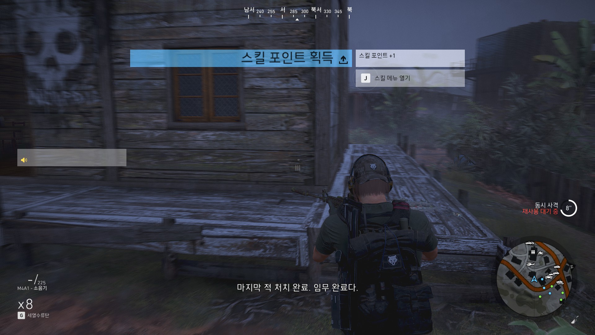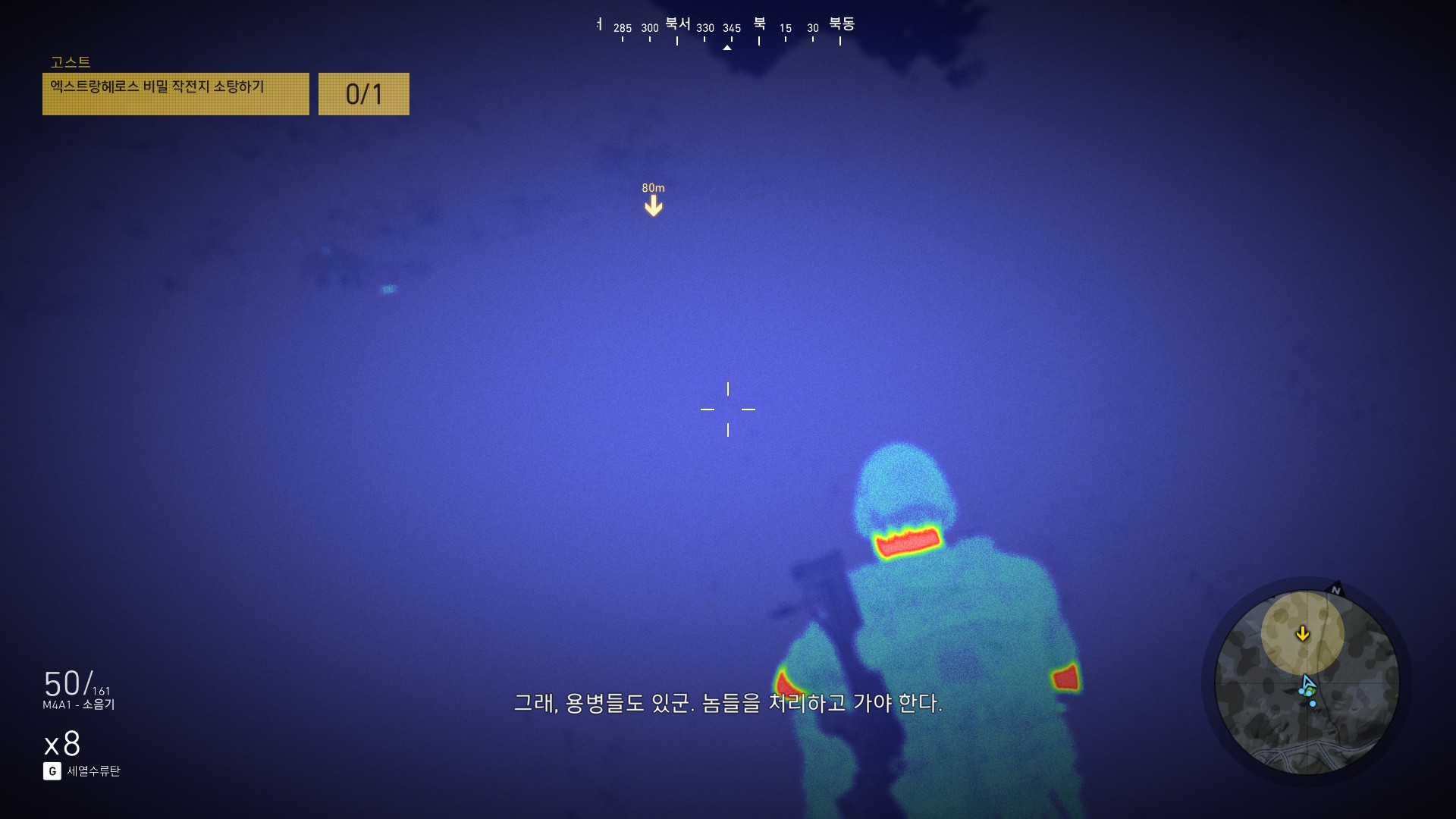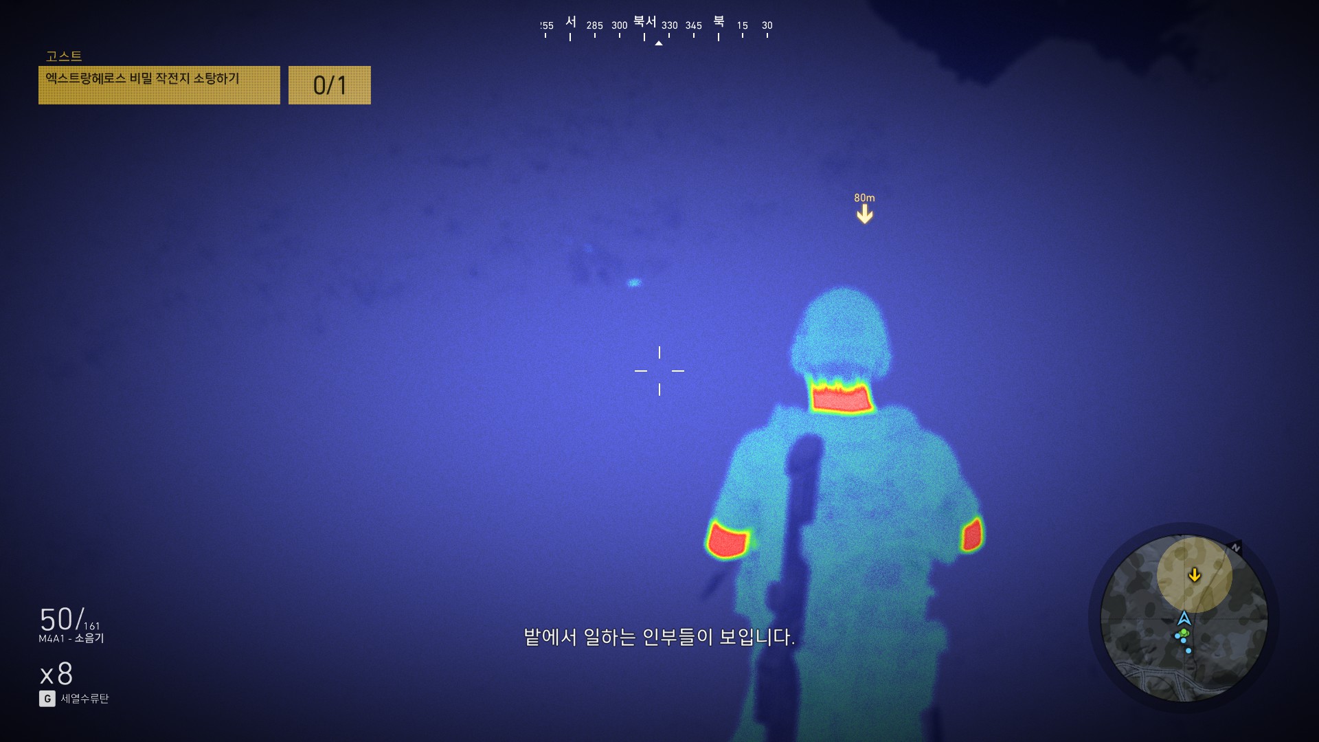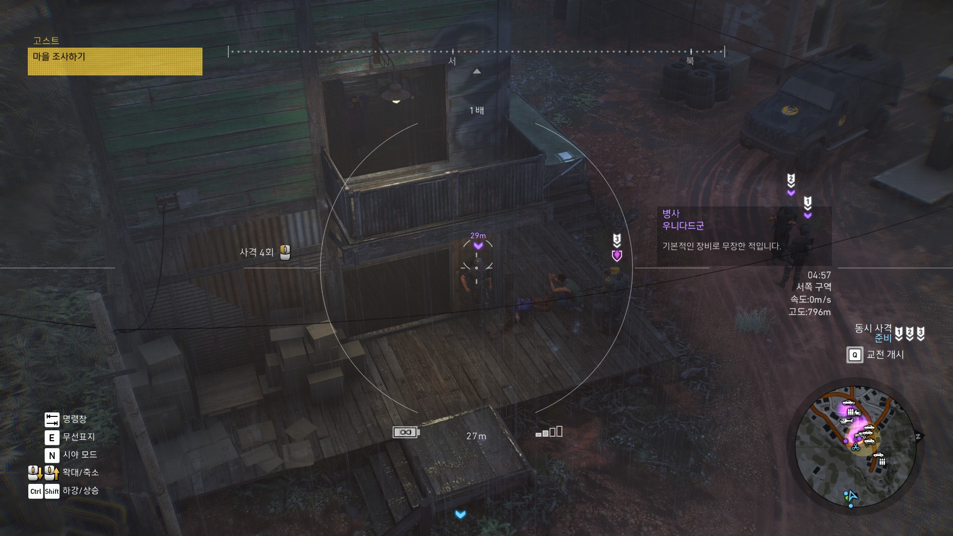광학미채 입은 병사들이 마을하나 쓸어버리겠다고 몰려오고 있습니다.