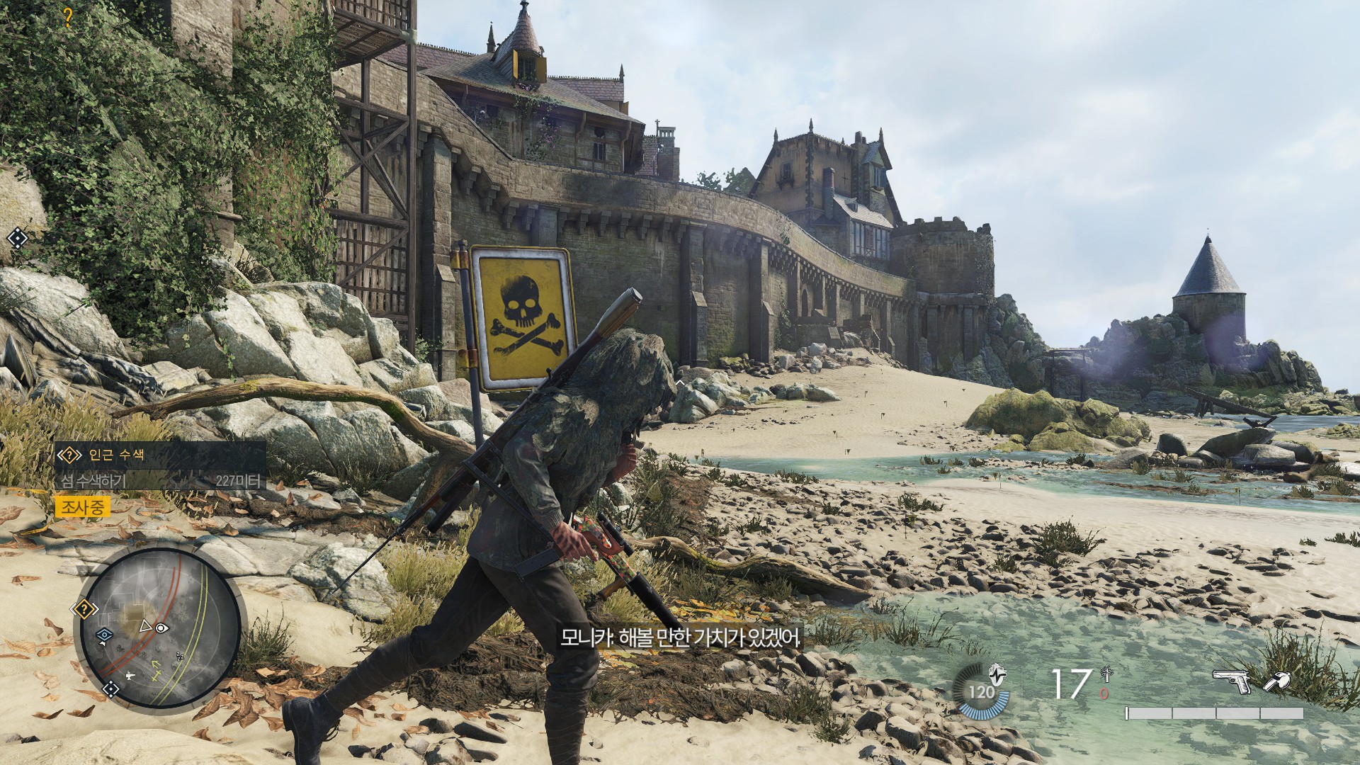 해안선을 따라서 침투하려고 하는데 지뢰가 깔려있습니다.
