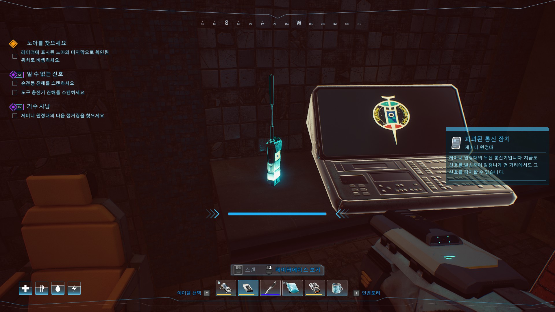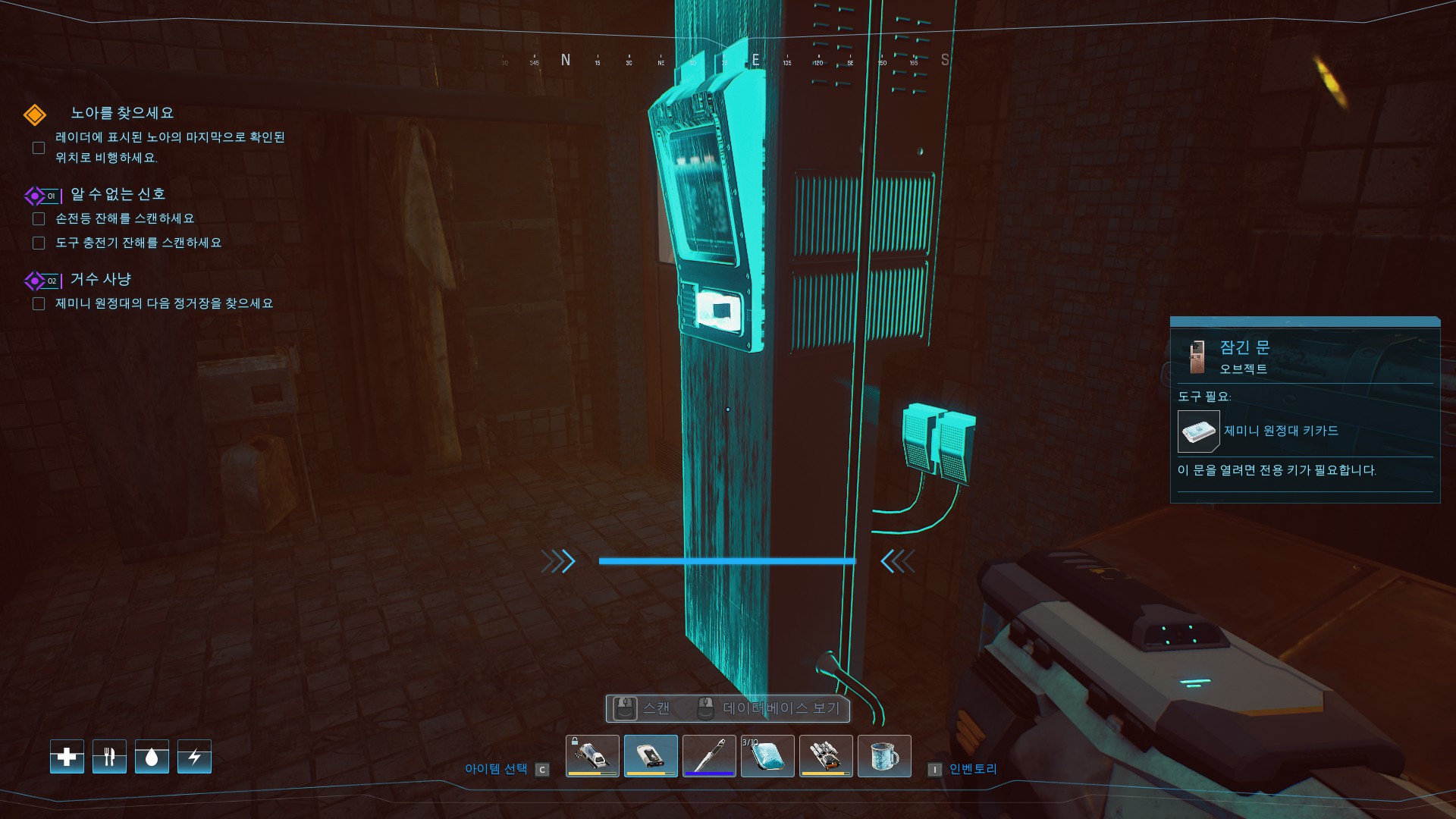 충전기, 손전등 같은 필수 도구를 스캔해야 합니다.